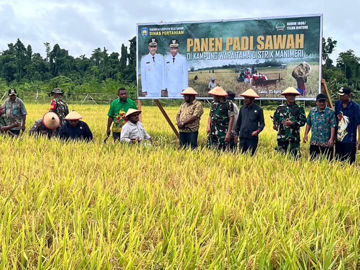 TELUK BINTUNI, SATUKANINDONESIA.Com – Pemerintah Daerah (Pemkab) kabupaten Teluk Bintuni melalui Dinas Pertaniannya melaksanakan kegiatan panen raya Padi Sawah bersama masyarakat di kampung Waraitama SP, distrik Manimeri, kabupaten Teluk Bintuni, provinsi Papua Barat, Sabtu (05/04/2025).