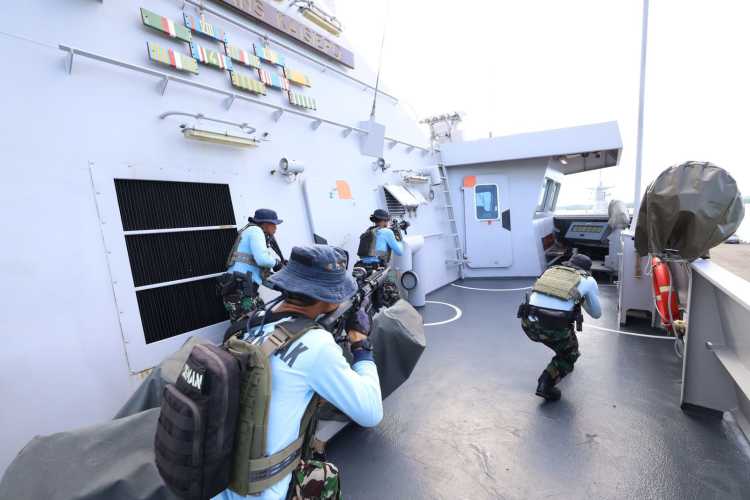 Latihan bersama yang melibatkan 220 prajurit TNI AL ini menitikberatkan pada materi keamanan maritim (Maritime Security) dan kemampuan peperangan laut (Naval Warfare Capability), meliputi latihan peran jaga perang untuk melewati daerah rawan, peran peperangan anti udara, peran peperangan anti permukaan, drill prosedur penembakan dan prosedur missfire meriam 76 mm serta latihan VBSS dari tim Komando Pasukan Katak (Kopaska).