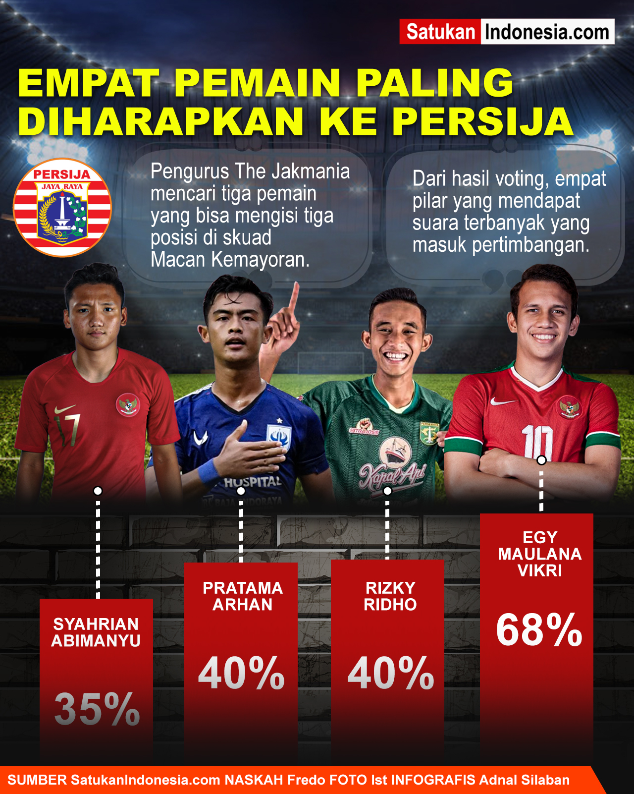 SatukanIndonesia.com – Pengurus The Jakmania mencari tiga pemain yang bisa mengisi tiga posisi di skuad Macan Kemayoran. Tiga posisi yang terdapat polling tersebut yakni bek sayap, gelandang tengah, dan gelandang serang.