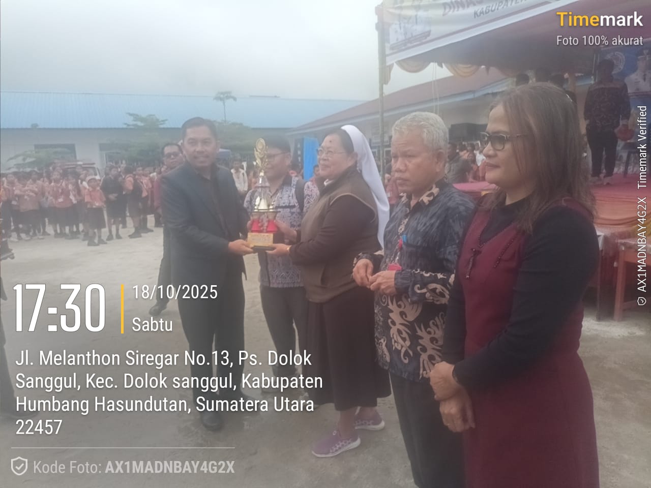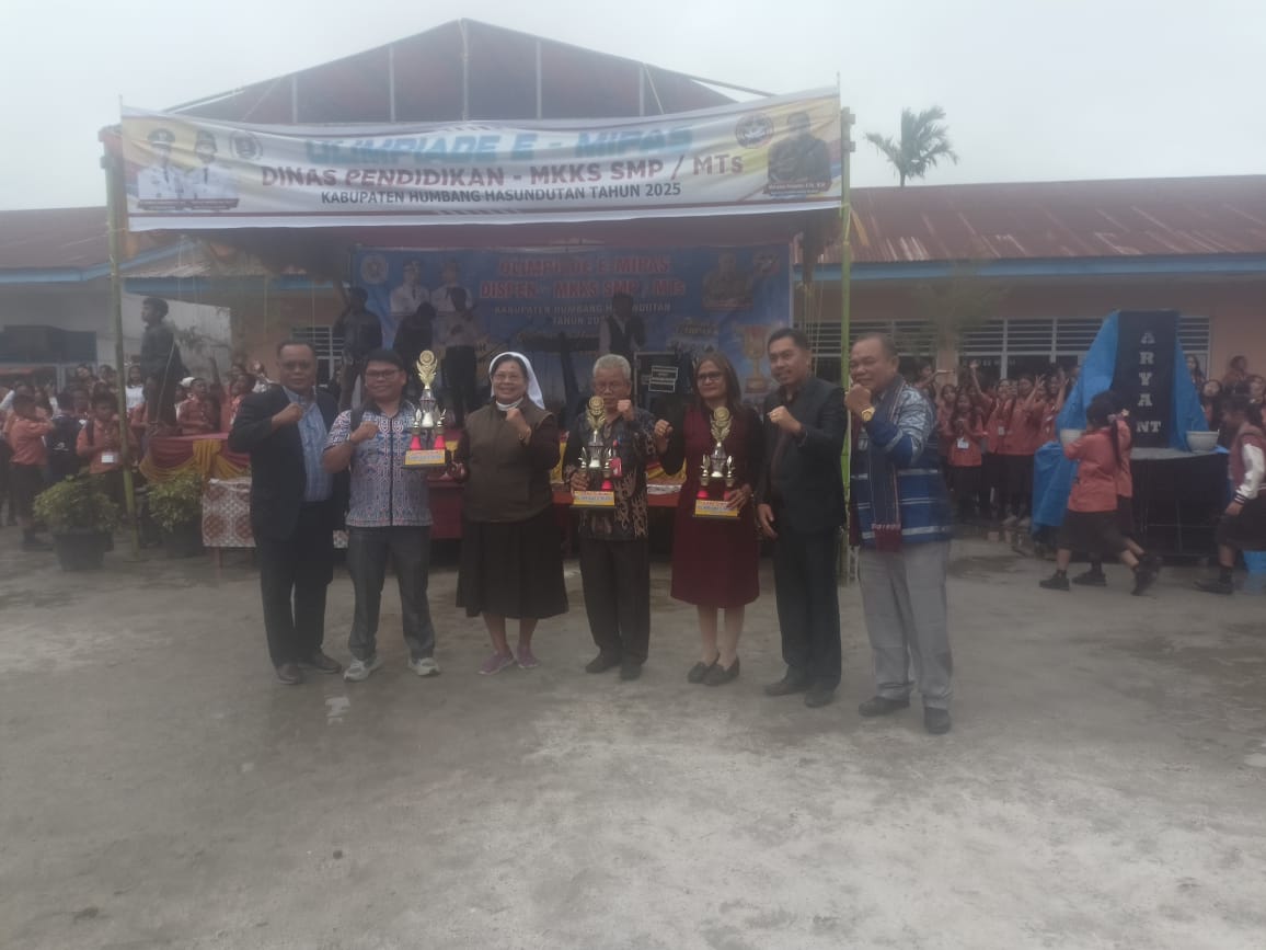 HUMBAHAS, satukanindonesia.com – Bupati Humbahas Dr.Oloan Paniaran Nababan ,SH,MH yang diwakili Asisten III Kabupaten Humbang Hasundutan (Humbahas) bersama Kepala Dinas Pendidikan dan Ketua Musyawarah Kerja Kepala Sekolah (MKKS) menyerahkan piala kepada para pemenang Olimpiade E-MIPAS yang berlangsung di UPT SMPN 001 Pasar Doloksanggul Sabtu 18/10/2025.