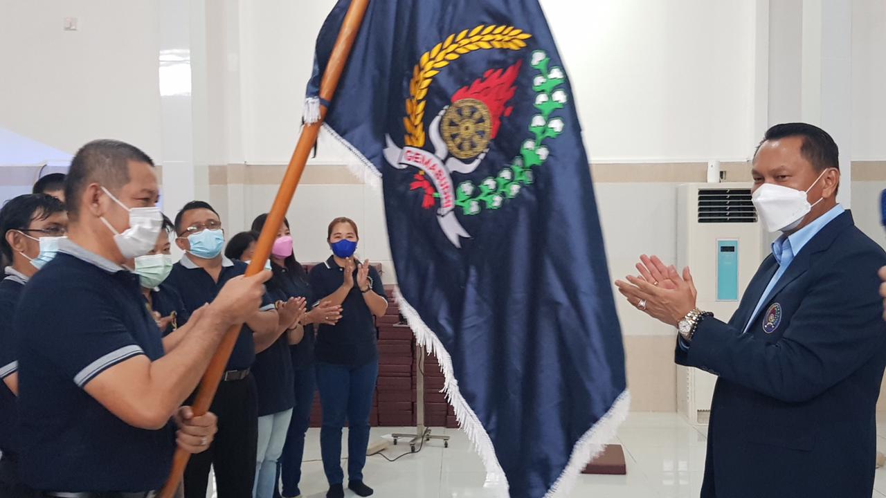 Secara simbolis Pelantikan dilakukan penyerahan Pataka oleh ketua umum Gemabudhi Bambang Patijaya kepada ketua DPD Gemabudhi Provinsi Jawa Barat Dariyanto dengan diikuti pengucapan Panca Ikrar Gemabudhi.