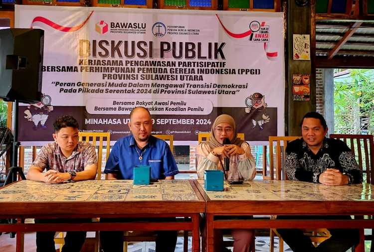 MANADO, SATUKANINDONESIA.Com – Badan Pengawas Pemilihan Umum (Bawaslu) Provinsi Sulawesi Utara bekerja sama dengan Dewan Pimpinan Daerah (DPD) Perhimpunan Pemuda Gereja Indonesia (PPGI) Provinsi Sulawesi Utara (DPD PPGI Sulut), menggelar diskusi Publik, bertempat di Resto Beranda WK Kecamatan Kalawat Kabupaten Minahasa Utara, Kamis (19/9/2024).