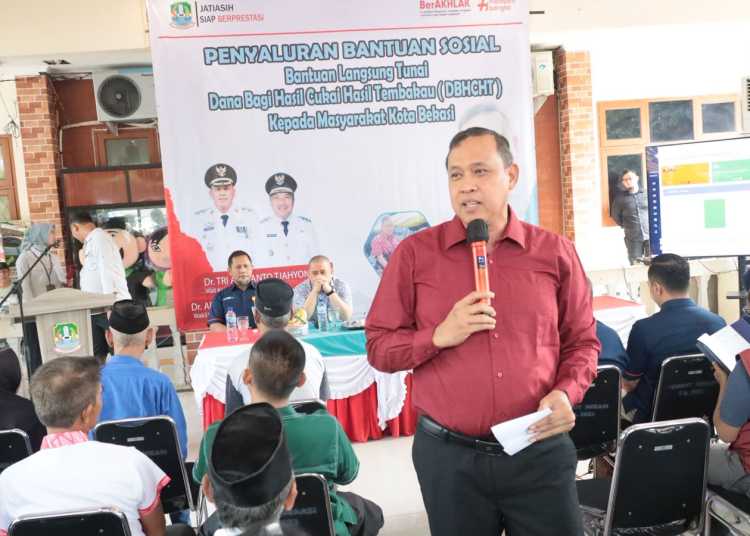 Wali Kota Bekasi, Tri Adhianto, hadir langsung untuk menyerahkan secara simbolis bantuan sebesar Rp 250.000 kepada masing-masing Keluarga Penerima Manfaat (KPM). Dana tersebut bersumber dari DBHCHT yang diterima Pemkot Bekasi dan disalurkan melalui kerja sama dengan PT. Pos Indonesia.