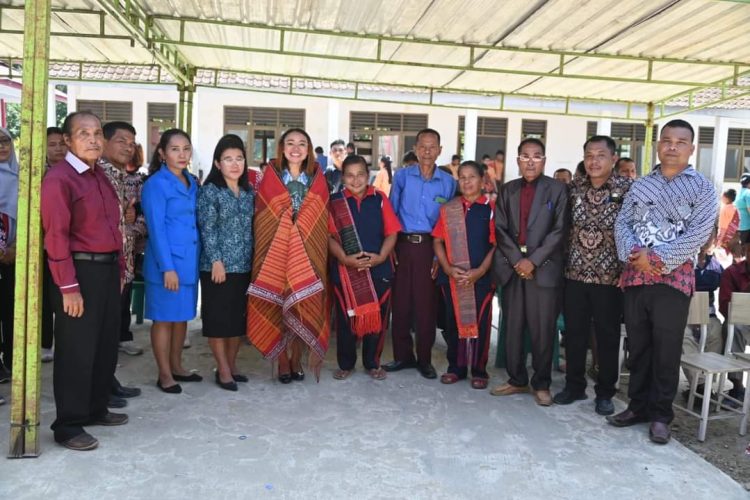Kehadiran rombongan disambut ratusan masyarakat setempat dan memberikan buket bunga kepada Bunda Paud. Sebagai ungkapan terimakasih atas kehadirannya, tokoh masyarakat memberikan cendramata berupa ulos kepada Bunda Paud.
