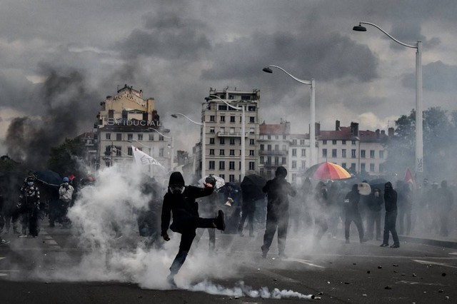Pasukan keamanan mengerahkan gas air mata di Toulouse ketika bentrokan meletus selama demonstrasi, sementara empat mobil dibakar di Kota Lyon.
