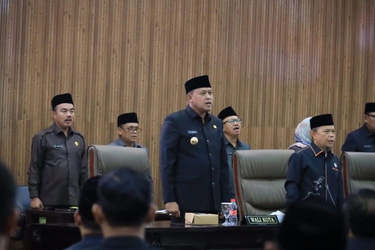 Ketua DPRD Kota Bekasi, H.M. Saifuddaulah memimpin rapat paripurna tersebut dihadiri para anggota DPRD, Pejabat Pemerintah Kota Bekasi, Forkopimda dan tamu undangan.