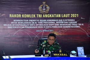 Hal tersebut ditekankan Wakil Kepala Staf Angkatan Laut (Wakasal) Laksamana Madya TNI Ahmadi Heri Purwono, mewakili Kepala Staf Angkatan Laut (Kasal) Laksamana TNI Yudo Margono saat memberikan pengarahan dalam Rapat Koordinasi Komunikasi dan Elektronika (Rakor Komlek) TNI AL Tahun 2021 secara tatap muka dan virtual, bertempat di Gedung Neptunus, Mabesal, Cilangkap, Jakara Timur, Kamis (25/3/2021).