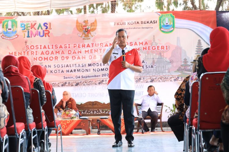 Wali Kota Bekasi, Tri Adhianto bersama Ketua FKUB, Abdul Manan, hadir langsung dalam sosialisasi tersebut yang mengusung tema “Dengan Sosialisasi Moderasi Beragama, Kota Capai Harmoni Nomor 1 di Indonesia“ yang mana akan rutin digelar di wilayah Kecamatan lainnya di Kota Bekasi.