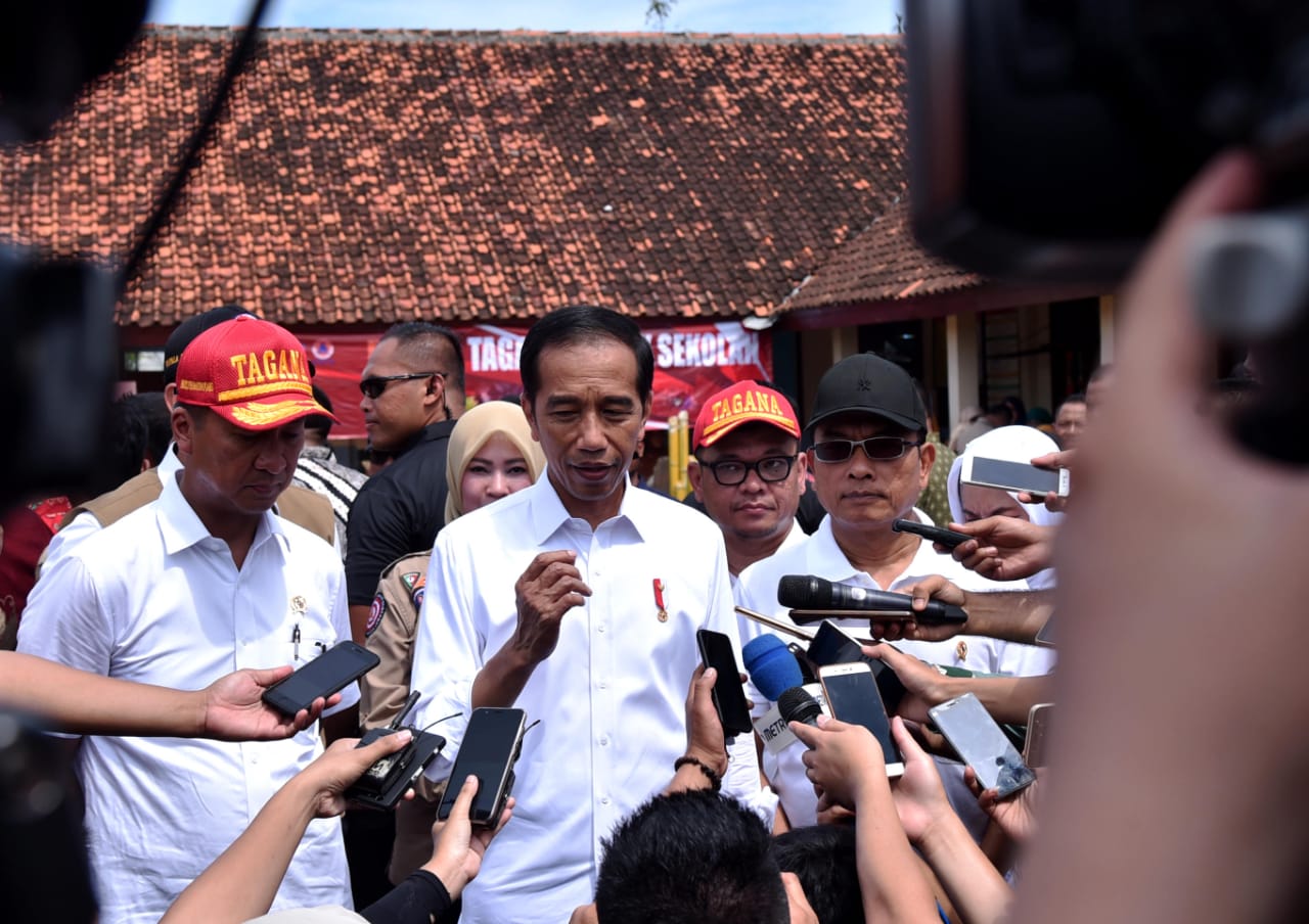 Jakarta, SatukanIndonesia.com – Dalam kunjungan kerjanya ke Provinsi Banten, Senin (18/02/19) Presiden Joko Widodo (Jokowi) meninjau langsung simulasi program Taruna Siaga Bencana (Tagana) Masuk Sekolah yang dilaksanakan di SD Negeri Panimbang Jaya 1, Kecamatan Panimbang, Kabupaten Pandeglang.