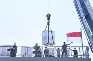 Jakarta, SatukanIndonesia.com — Kapal perang TNI Angkatan Laut (TNI AL) KRI Teluk Bintuni-520 telah tiba di dermaga Jakarta International Container Terminal (JICT) II Tanjung Priok, Jakarta Utara membawa bantuan medis dari Singapura berupa peralatan kesehatan dalam rangka penanggulangan pandemi Covid-19, Senin (16/8).