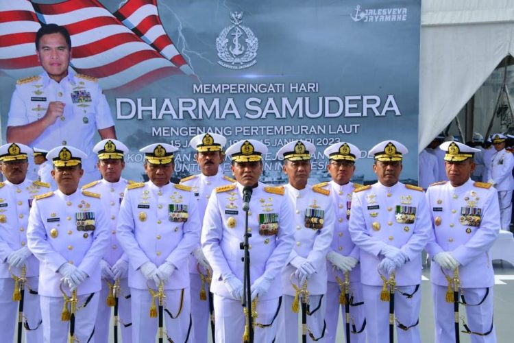 Dalam kesempatan itu, pemimpin TNI AL tersebut menyampaikan ucapan selamat Hari Dharma Samudera kepada seluruh prajurit TNI AL dimanapun berada dan bertugas. “Selamat memperingati Hari Dharma Samudera 2023, Kita wujudkan Indonesia sebagai poros maritim dunia. Hantaman gelombang laut takkan berhenti, demikian juga perjuangan bangsa maritim yang besar terus berkobar dari generasi ke generasi”, ucapnya.
