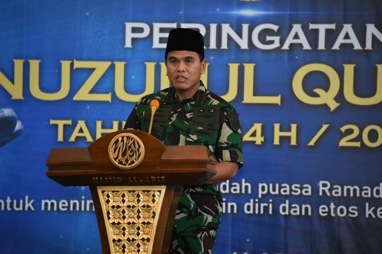 Jakarta, SatukanIndonesia.Com – “Salah satu keistimewaan Bulan Ramadhan yang penuh berkah dan ampunan ini adalah di dalamnya diturunkan Al Qur’an yang merupakan Mukjizat Rasulullah Salallahu Alaihi Wassalam”. Demikian disampaikan Kepala Staf Angkatan Laut (Kasal) Laksamana TNI Muhammad Ali dalam acara Peringatan Nuzulul Qur’an Tahun 1444 H /2023 M bertempat di Masjid Al Arif, Mabesal, Cilangkap, Jakarta Timur, Selasa (11/04).