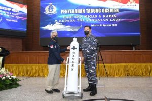 TNI AL mendapat kepercayaan dari Kadin dan SKK Migas berupa donasi tabung oksigen sebanyak 300 tabung berukuran 7 m3 (sekitar 47 liter) dan regulator. Serah terima tabung oksigen ditandai penyerahan tabung secara simbolis dari Kepala SKK Migas Ir. Dwi Soetjipto kepada Kasal Laksamana TNI Yudo Margono, S.E., M.M., yang sebelumnya dilaksanakan penandatanganan penyerahan barang oleh Wakil Ketua Umum Kadin Ibu Shinta Wijaya Kamdani mewakili Ketua Umum Kadin Kepala Dinas Kesehatan Angkatan Laut (Kadiskesal) Laksamana Pertama TNI dr. Agus Guntoro, Sp. BS. Yang disaksikan Kasal dan Kepala SKK Migas.
