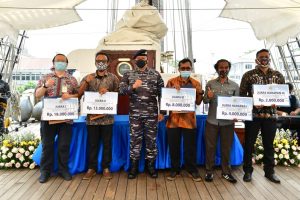 Jakarta, SatukanIndonesia.com – Kepala Staf Angkatan Laut (Kasal, Laksamana TNI Yudo Margono, S.E., M.M., didampingi Kepala Dinas Penerangan Angkatan Laut (Kadispenal) Laksma TNI Julius Widjojono menyerahkan hadiah berupa sertifikat dan uang pembinaan kepada para pemenang lomba foto dan Video KRI Dewaruci bertempat di atas Geladak KRI Dewaruci yang sedang sandar di Dermaga Kolinlamil, Jakarta Utara, Selasa (23/2/2021).