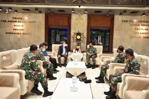 Jakarta, SatukanIndonesia.com – Kepala Staf Angkatan Laut (Kasal) Laksamana TNI Yudo Margono menerima kunjungan Ketua Tim Pelaksana (Katimlak) Komite Kebijakan Industri Pertahanan (KKIP) Letjen TNI (Purn) Suryo Prabowo berserta staf di Gedung Utama Markas Besar Angkatan Laut (Mabesal), Cilangkap Jakarta Timur. Rabu, (14/4/2021).