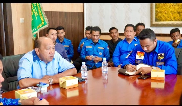 Langkat, SatukanIndonesia.Com – Plt Bupati Langkat H.Syah Afandin SH menerima Audiensi Ketua dan pengurus Komite Nasional Pemuda Indonesia (KNPI) Kabupaten Langkat H. Rizky Yunanda Sitepu, S.TP., M.P. beserta anggota KNPI langkat diterima audiensi di ruang rapat kantor Bupati Langkat, Selasa (2/5/2021).