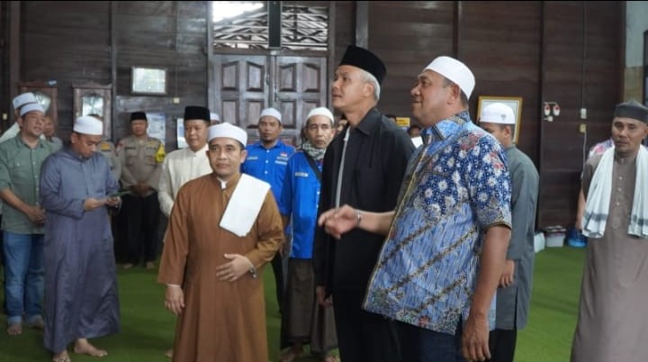 Plt. Bupati Langkat mengucapkan selamat datang di kabupaten langkat tanah bertuah atas kunjungan bapak Ganjar pranowo ke kampung Besilam Babusalam, kampung wisata religius yang berada di kecamatan Padang Tualang Kabupaten Langkat.