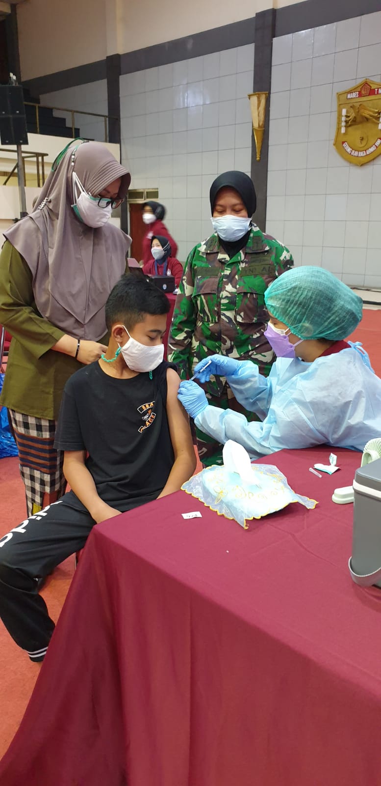 Jakarta, SatukanIndonesia.com – Tenaga Kesehatan (Nakes) TNI Angkatan Laut bersama 50 Nakes lainnya membantu kelancaran vaksinasi yang menargetkan 1.500 khusus anak-anak keluarga besar TNI berusia 12 – 17 tahun, bertempat di Gelanggang Olah Raga (GOR) Ahmad Yani, Mabes TNI Cilangkap, Jaktim, Selasa, (27/7/2021).