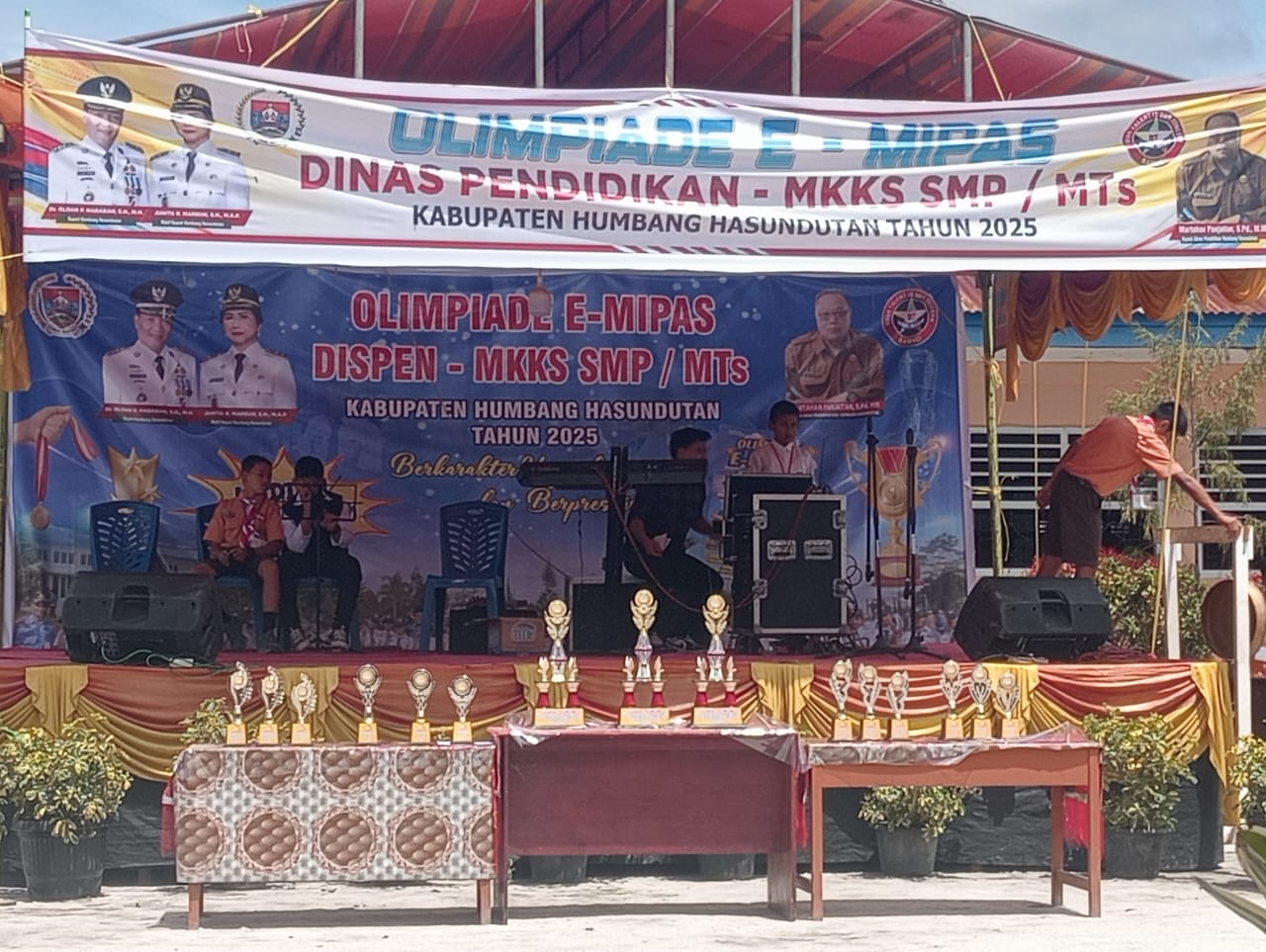 Asisten III Bupati Humbahas, Kadis Pendidikan, dan Ketua MKKS Serahkan Piala Olimpiade E-MIPA di UPT SMP 001 Pasar Doloksanggul