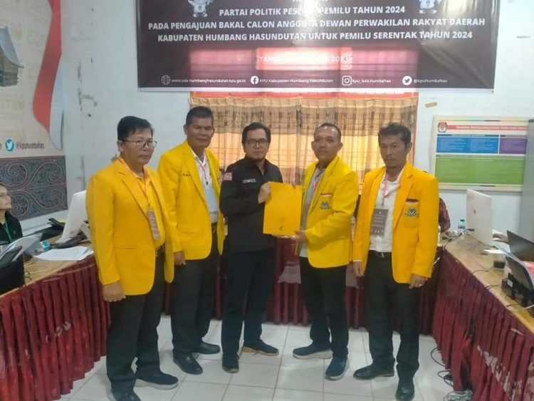 Sekertaris Partai Golkar Humbang Hasundutan Parulian Simamora yang didampingi Admin Silon Partai Golkar Humbahas Carles Hamonangan Marbun langsung menyerahkan berkas Formulir B, pengajuan parpol dan formulir B pengajuan bakal calon Parpol dan selanjutnya menyerahkan bukti fisik ke KPU Humbahas serta menyampaikan syarat bakal bukti calon dalam bentuk digital yang di unggah melalui Silon .