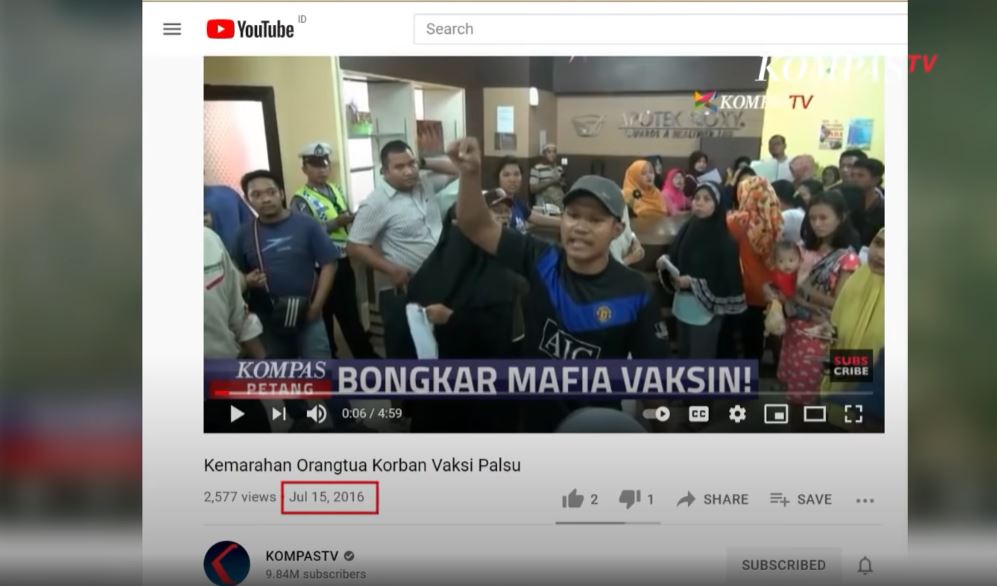Video pemberitaan medis Kompas TV ini juga masih menyebutkan keberadaan RS Almutazam terkait kasus vaksin palsu.
