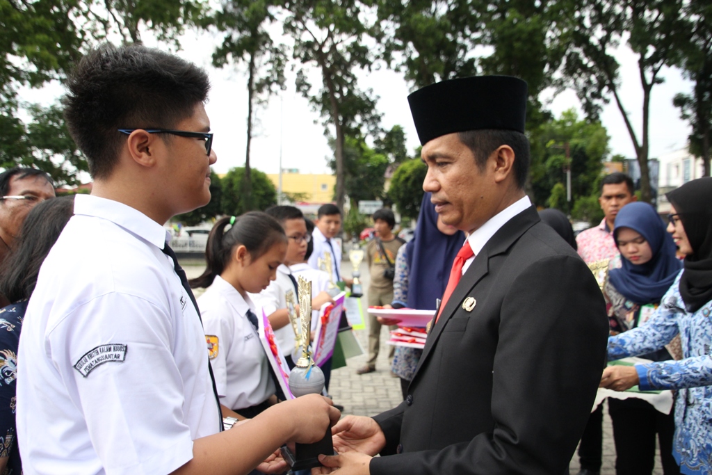 Usai upacara, dilanjutkan pemberian piala dan piagam kepada para kepala sekolah dan guru berprestasi tingkat TK, SD, SMP, dan SMA. Juga para pemenang Olimpiade Sains Nasional (OSN) tingkat SMP dan Olimpiade Sains SD tingkat Kota Pematangsiantar.