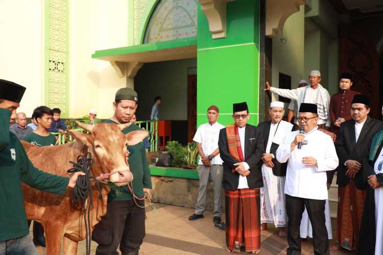 Selepas Shalat Ied, Gani Muhamad memberikan sambutan, Ia menyampaikan jadikan Idul Adha sebagai bentuk refleksi pembelajaran dari kisah Nabi Ibrahim dan Nabi Ismail AS dalam pengorbanan dan keikhlasannya dalam beribadah serta menjalankan segala kewajiban-Nya.