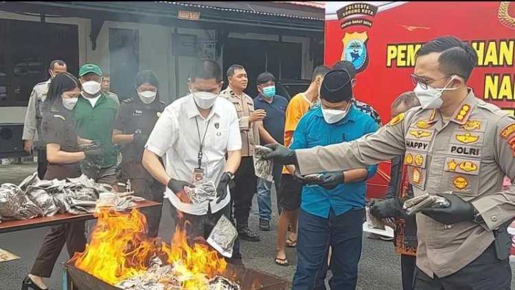 Kapolresta Sorong Kombes Pol. Happy Perdana Yudianto menjelaskan, barang bukti Narkoba jenis Ganja yang dimusnahkan seberat 6 Kilogram ini merupakan bagian dari upaya keseriusan dan komitmen pihak kepolisian.
