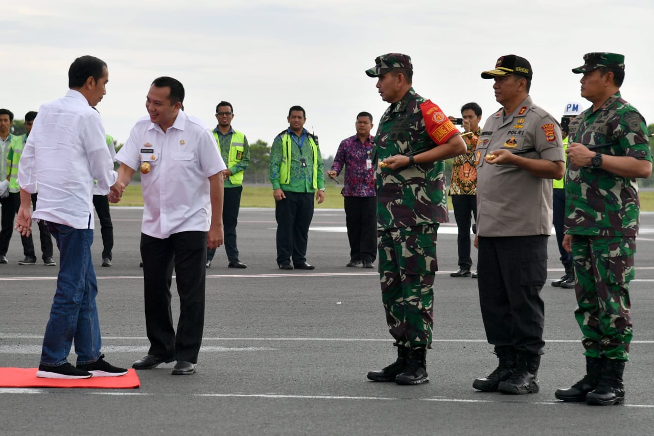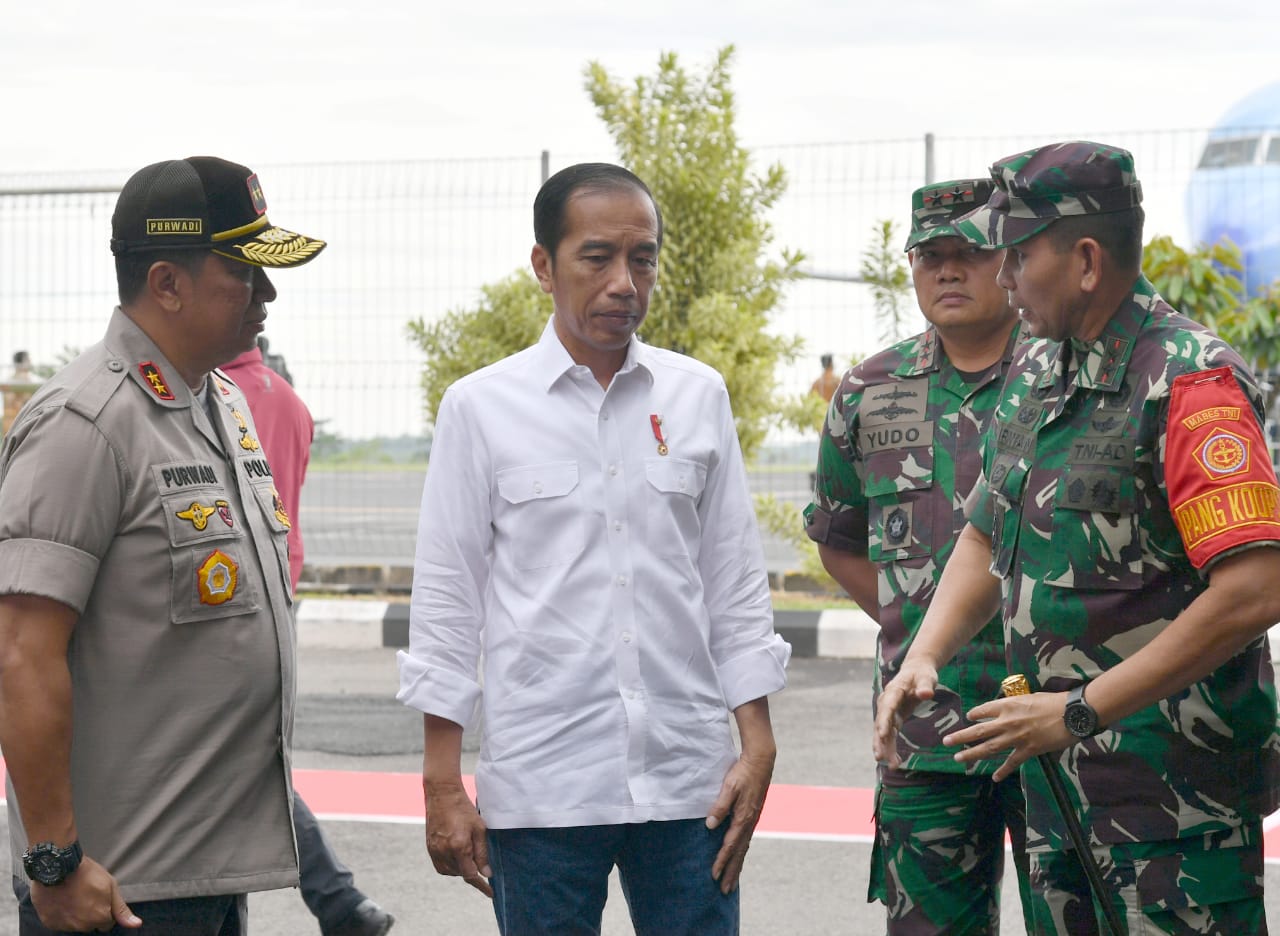Tiba di Bandar Udara Radin Inten II, Kabupaten Lampung Selatan pada pukul 09.05 WIB, Presiden disambut oleh Gubernur Lampung Muhammad Ridho Ficardo, Pangdam II/Sriwijaya Mayjen TNI Irwan, dan Kapolda Lampung Irjen Pol Purwadi Arianto.