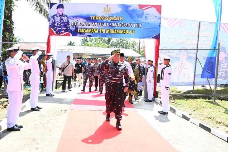 JAKARTA, SATUKANINDONESIA. Com – Sebagai wujud perhatian dan untuk menyemangati prajurit TNI AL yang bertugas digarda terdepan Matra Laut, Kepala Staf Angkatan Laut (Kasal) Laksamana TNI Dr. Muhammad Ali melaksanakan kunjungan kerja ke Pos Bintara Pembina Potensi Maritim (Babinpotmar) Perawang yang berada di Desa Perawang, Kecamatan Tualang, Kabupaten Siak, Riau,(5/6).