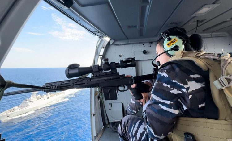 Srikandi laut, Serda Nav/W Nabila Maharani turut menjadi penentu kemenangan sebagai sniper yang berhasil menembak musuh dengan akurasi tinggi dari ketinggian menggunakan senjata RPA kaliber 7,62 mm on board Heli Panther HS-1306.