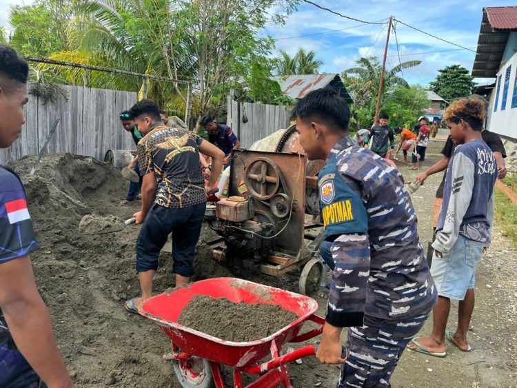 Jakarta, SatukanIndonesia.Com – Sebagai salah satu wujud pengabdian masyarakat, Prajurit TNI Angkatan Laut (TNI AL) dari Pangkalan TNI Angkatan Laut (Lanal) Nabire bergotong royong dengan masyarakat membangun akses jalan Kaleb Waray di Kampung Labani, Teluk Kimi Samabusa, Nabire, Papua Tengah, Selasa (09/01).
