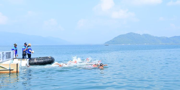 Jakarta, SatukanIndonesia.com—Menjelang HUT Kemerdekaan RI Ke-78 TNI Angkatan Laut menggelar lomba olah raga air 2023 Renang Laut Selat Kelagian, Kamis (10/08). Kompetisi ini diikuti oleh 381 peserta atlet renang muda dari seluruh Indonesia dengan berbagai nomor yang dilombakan.