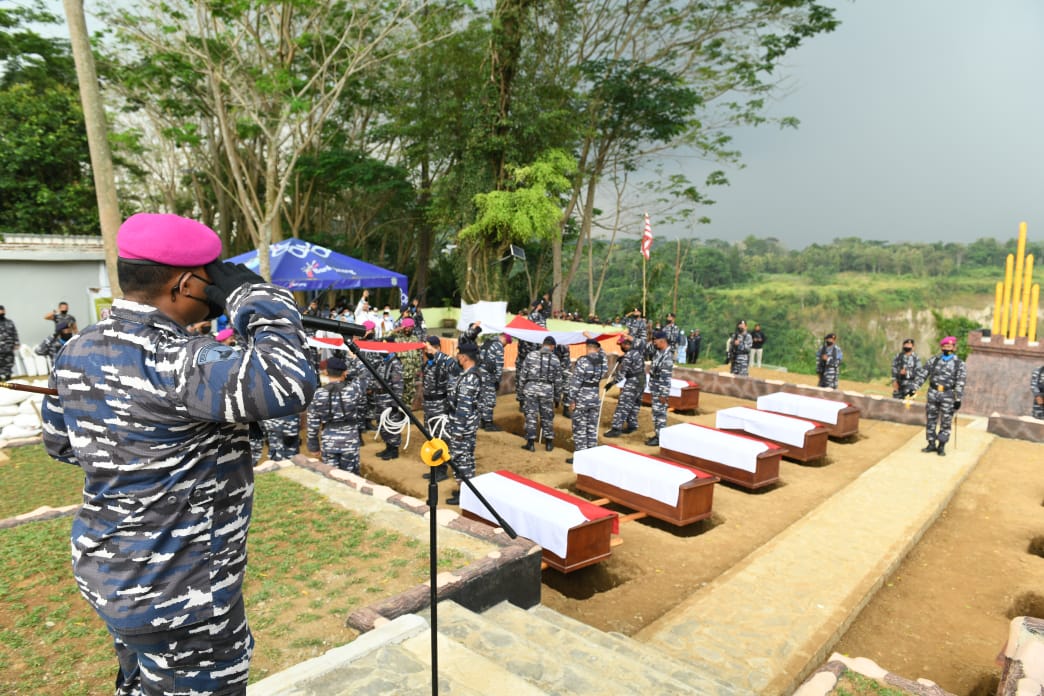 Jakarta, SatukanIndonesia.com – Hargai dan hormati jasa para Pahlawan Kusuma Bangsa, TNI Angkatan Laut (TNI AL) memakamkan kembali jasad para syuhada bangsa yang jasadnya telah menjadi tanah, yang merupakan korban kekejaman tentara Belanda pada tahun 1947 ke komplek monumen perjuangan TNI AL Wana Samudera, Kalibakung, Tegal, Jawa Tengah dalam suatu upacara militer, Jumat (30/7/2021).