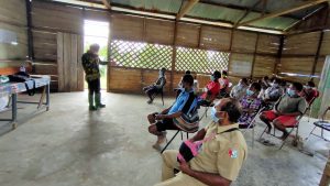 Boven Digoel, SatukanIndonesia.com – Satgas TNI Manunggal Membangun Desa (TMMD) Reguler Ke-110 Tahun 2021 Kodim 1711/BVD menggandeng Dinas TPHPP (Tanaman Pangan Holtikultura Peternakan dan Perikanan) dalam rangka menggelar kegiatan non fisik sosialisasi penyuluhan ketahanan pangan dan pertanian kepada warga Kampung Kombay, Distrik Kawagit, Kabupaten Boven Digoel, Papua, Kamis (18/3/2021).