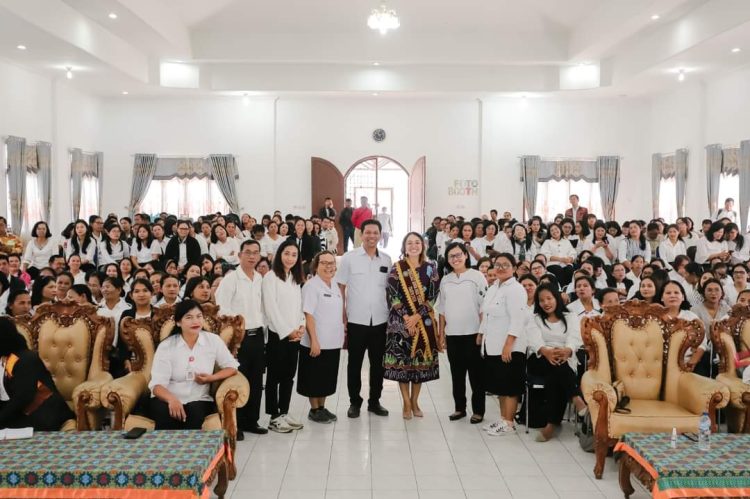 Usai kegiatan sosialisasi, Ketua TP. PKK Humbahas mengajak peserta untuk berkomitmen dalam mensukseskan Gerakan Transisi PAUD-SD yang menyenangkan.(BS/redaksi)