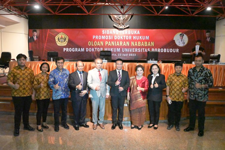 Dihadapan komisi pembimbing Dr.H. Azis Budianto S.H, M.S (Ko-Promotor) dan panitia ujian Doktor (S.3) yaitu Rektor Universitas Borobudur Prof.Dr.Ir.H. Rudi Bratamanggala, MM, Direktur Program Pascasarjana Universitas Borobudur Prof.Dr.Faisal Santiago (Promotor), penguji dalam institusi Dr Hj Megawati Barthos dan Dr.Darwati serta penguji luar institusi Prof.Dr. Zaenal Arifin SH MH, Wakil Bupati Humbahas Oloan Paniaran Nababan berhasil mempertahankan disertasinya.