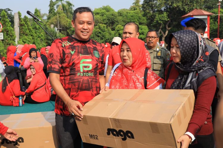 Dalam kegiatan yang diiringi senam bersama, Wali Kota Bekasi mengajak beberapa para ibu kader posyandu untuk menjawab pertanyaan dan mendapatkan souvenir berupa sepatu menarik.